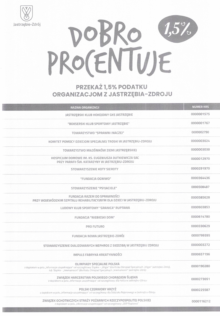 Możesz wesprzeć organizacje z Jastrzębia-Zdroju, przekazując im 1,5% swojego podatku